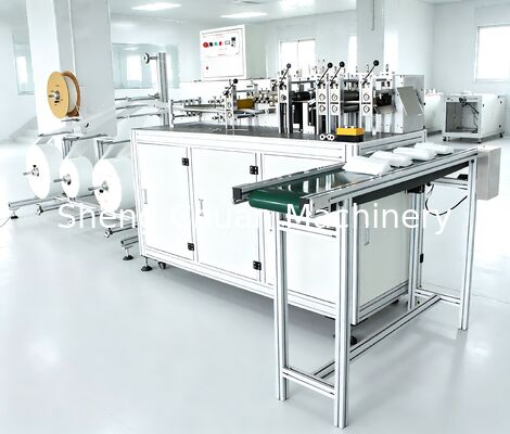 The machine produces non-woven face mask blank body automatically from feeding raw material to insert, nose-loops inserting, cutting, folding, welding non-woven fabric to finish mask blank which will be counted and collected on conveyor. One machine can do all the work efficiently. The size of mask blank (L*W): 180*90/95 or customized.